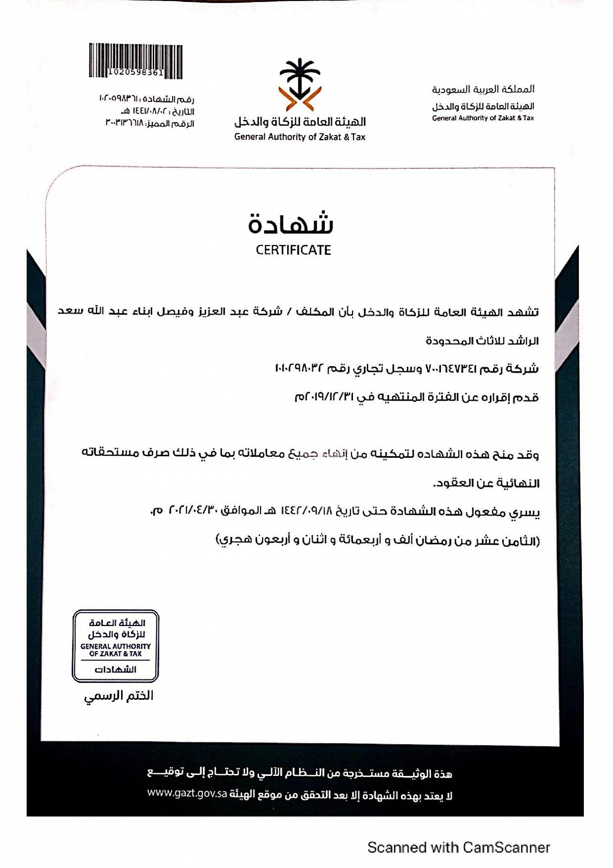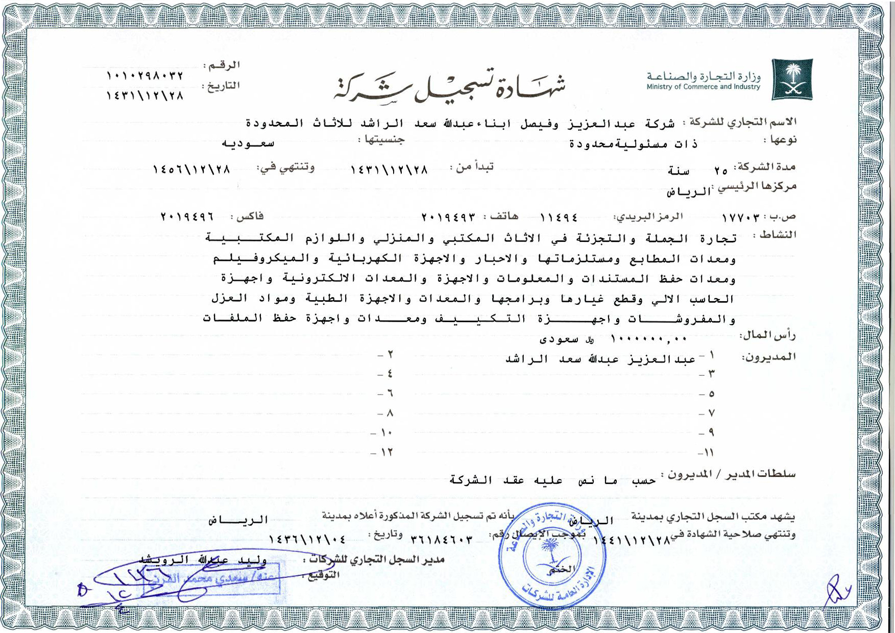Commercial Registration Certificate