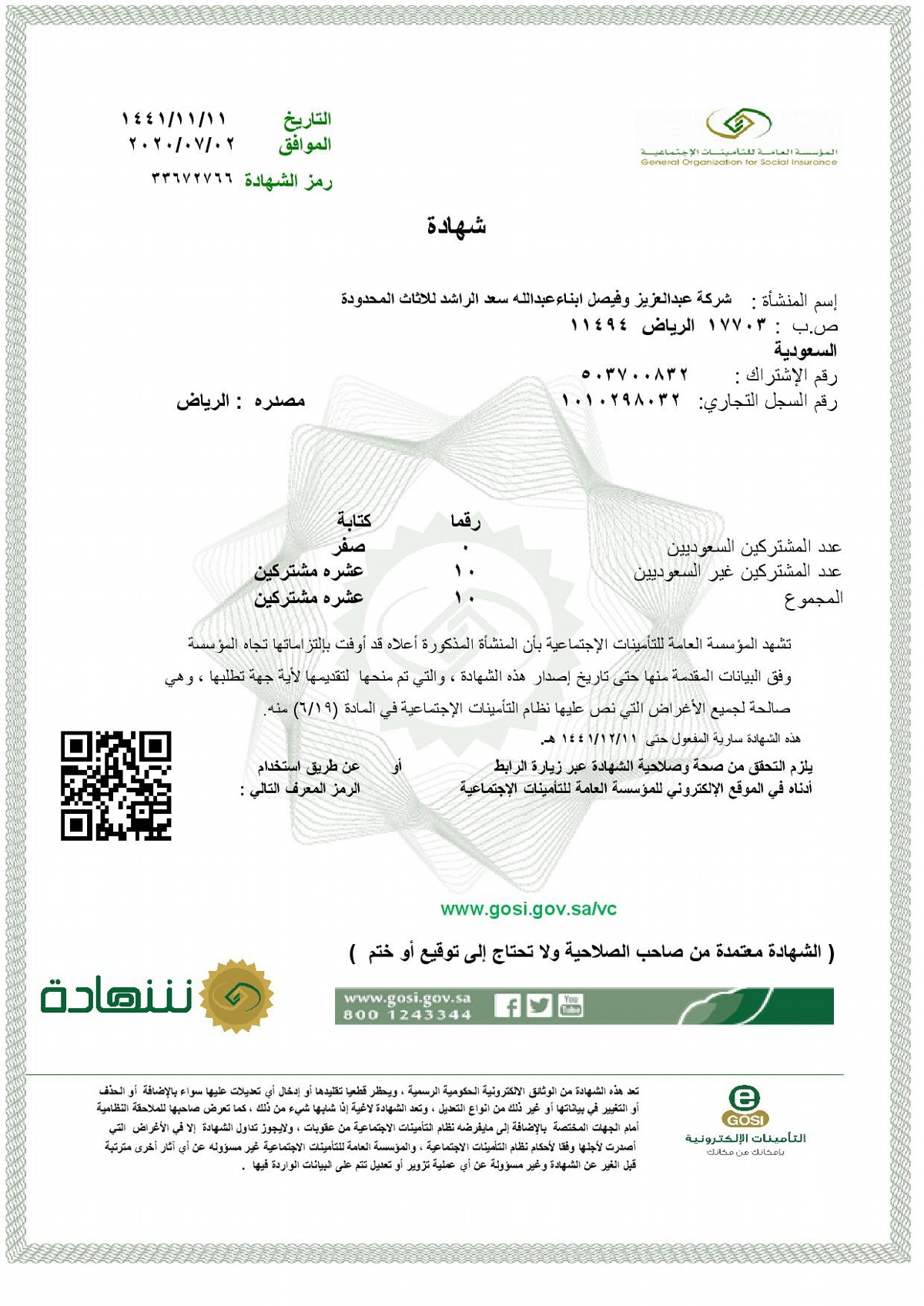 Social Insurance Certificate